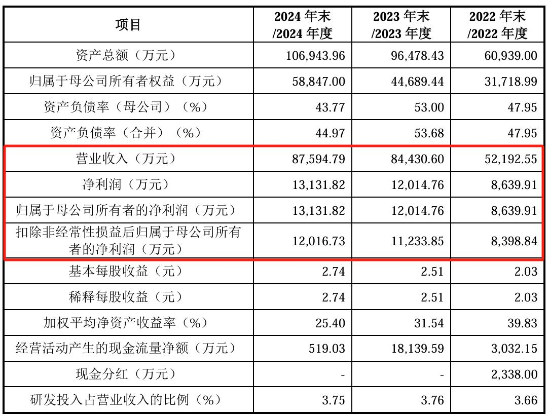 2022年、2023年和2024年(同“報告期”),澤潤新能分別實現收入5.22億元、8.44億元和8.76億元,雖然整體呈穩中有增的上升趨勢,但其收入增長率卻由2023年的61.77%降至2024年的3.75%。
