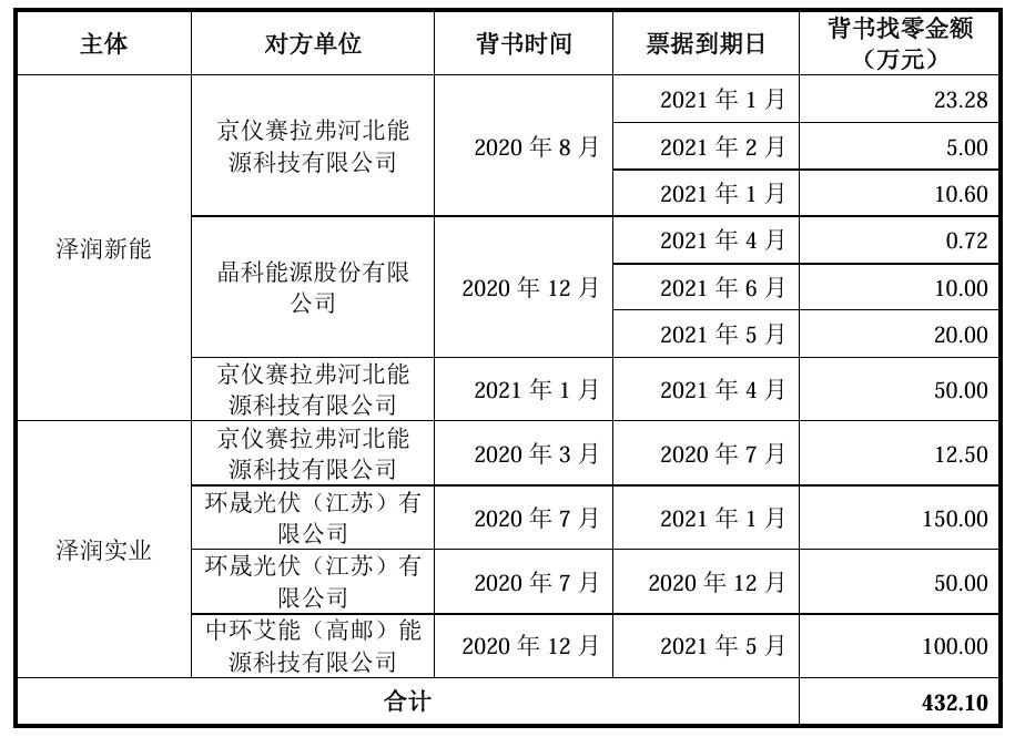由于客戶因持有票據金額較大,背書支付票據金額大于所需支付的貨款,澤潤新能、澤潤實業出于業務結算便捷考慮,還在2020年3月至2021年1月期間,將多支付的部分款項通過票據背書予以退還,即出現“票據找零”的違規操作。