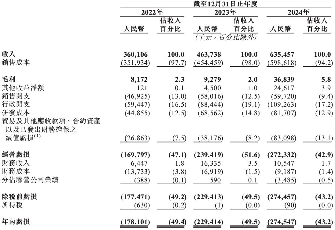 2022年、2023年和2024年,博雷頓的營收分別約為3.60億元、4.64億元和6.35億元,凈利潤分別約為-1.78億元、-2.29億元和-2.75億元。