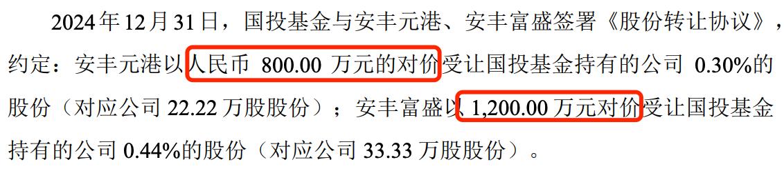 據招股書披露,國投基金曾持有易思維約5.66%的股權。2024年12月,國投基金與安豐元港、安豐富盛簽訂股份轉讓協議。其中,安豐元港、安豐富盛分別斥資800萬元、1200萬元分別受讓國投基金所持易思維0.30%、0.44%的股權。