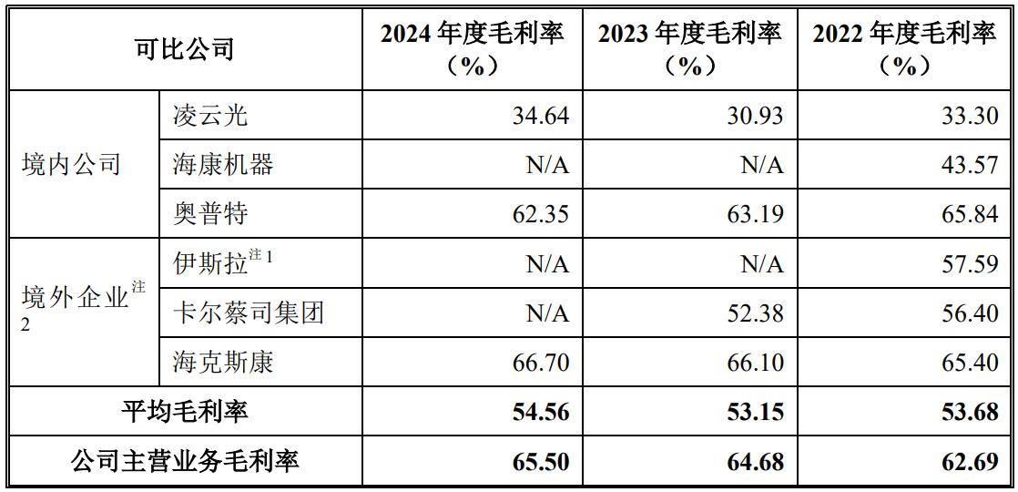 易思維在招股書中稱,該公司的主營業務聚焦汽車制造行業,覆蓋機器視覺產業鏈的上、中、下游,目前在行業內主要競爭企業均為境外企業,其中伊斯拉系公司多款核心產品直接競爭企業,該公司與伊斯拉可比性最高,毛利率水平也較為接近。