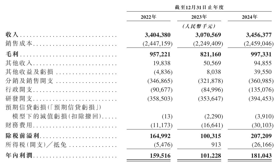 招股書顯示,商米科技的收入由2022年的34.04億元下滑9.8%至2023年的30.71億元,又回升至2024年的34.56億元,但僅略高于2022年。換句話說,商米科技三年間僅實現了約5200萬元的收入凈增長。