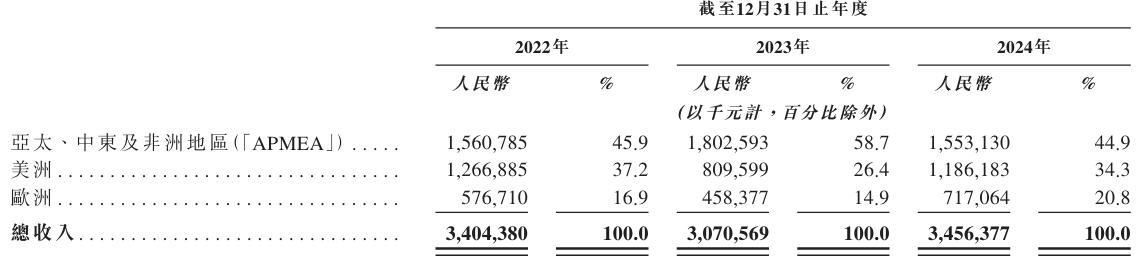 按照地區劃分可知,亞太、中東和非洲地區為商米科技貢獻了近半收入;同時,該公司不斷拓展歐美市場,2024年來自美洲市場的收入同比46.5%增長至11.86億元;來自歐洲市場的收入也提升至7.17億元,增幅約為56.4%。