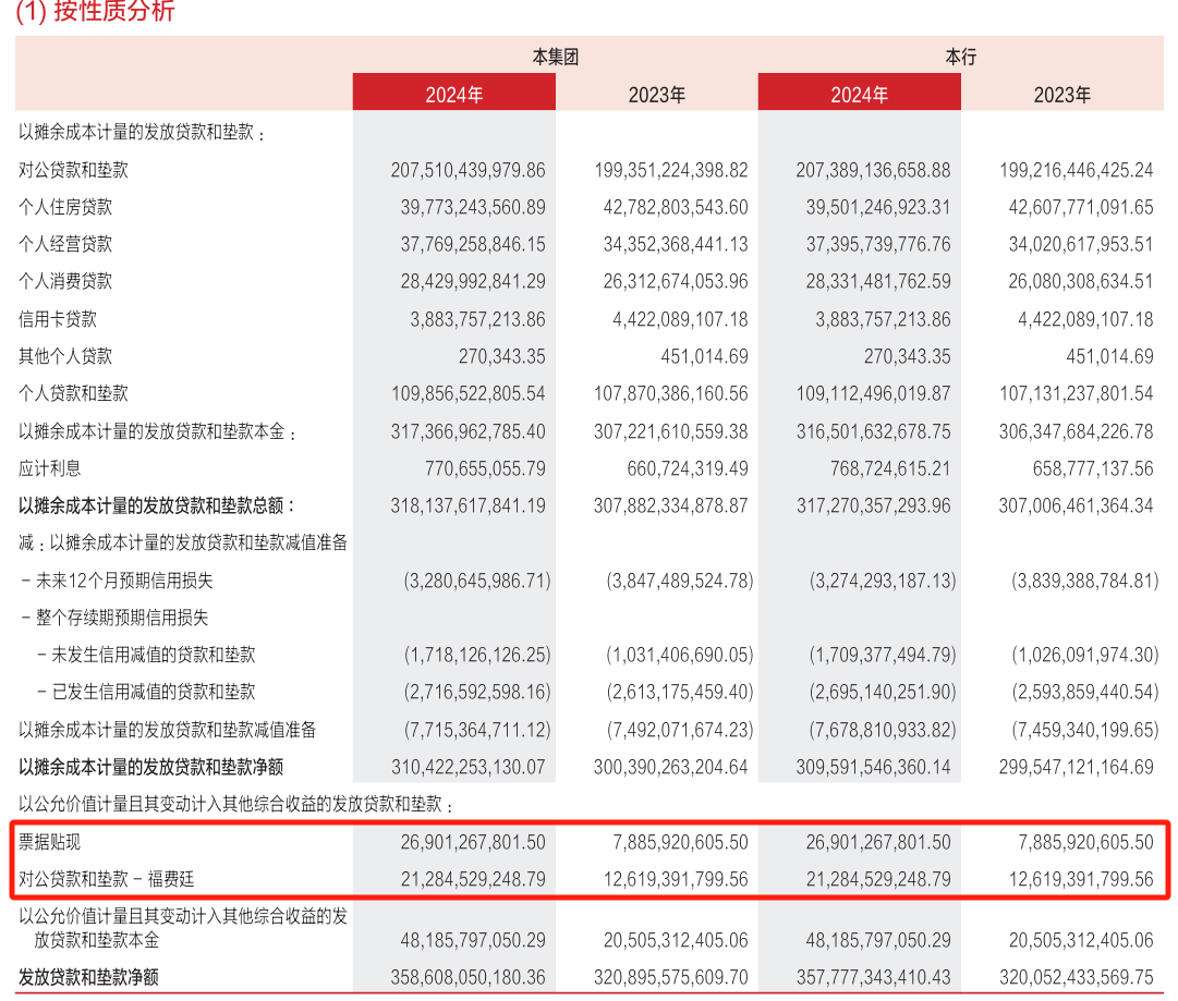 此外,在2024年以公允價值計量且其變動計入其他綜合收益的金融資產中,東莞銀行除了票據貼現暴漲超過三倍,福費廷余額也達到212.85億元,較2023年末激增68.67%。也能看出東莞銀行對自身流動性的關注。