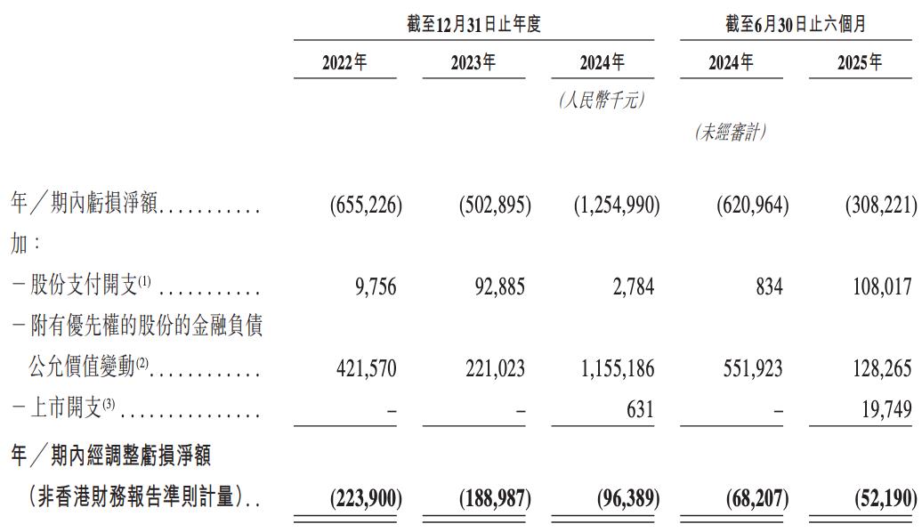 按非香港財務報告準則計量,滴普科技的經調整凈虧損分別約為2.24億元、1.89億元、9638.9萬元和5219.0萬元。