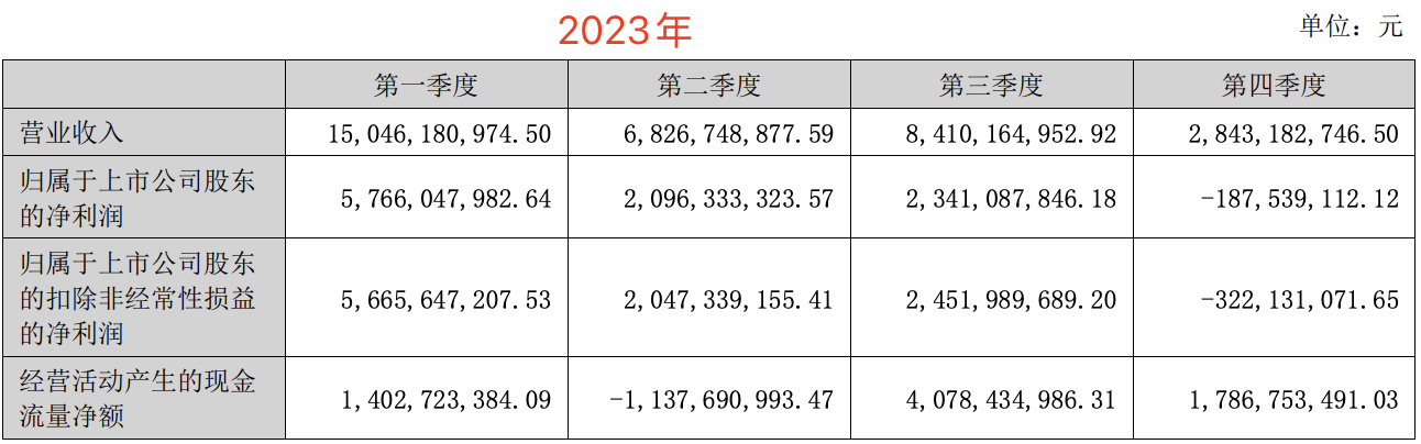貝多財經發現,僅就四季度而言,洋河股份2023年第四季度的收入約為28.43億元,較2022年同期減少了約7.79億元。與此同時,洋河股份在2023年第四季度還錄得凈虧損約1.88億元,扣非后凈利潤約為-3.22億元,罕見出現虧損。