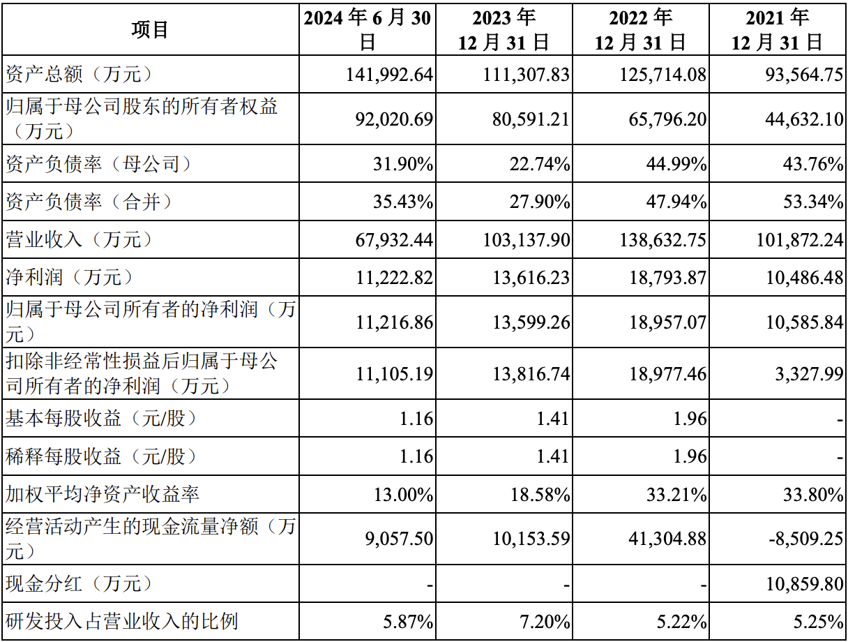 2024年上半年,漢桑科技的營收約6.79億元,較2023年同期的5.61億元增長21.02%;凈利潤約8134.10萬元,同比增長37.97%;扣非后凈利潤約1.11億元,同比增長31.49%。