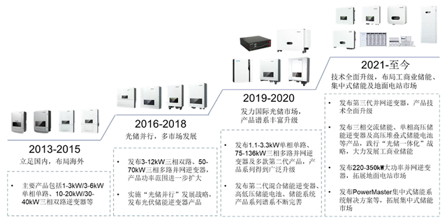 自2013年成立以來,首航新能就持續在光伏逆變器領域進行研發投入和技術積累,先是以小功率并網逆變器打開市場,又前瞻性地布局儲能領域,目前核心產品已涵蓋光伏并網逆變器、光伏儲能逆變器和儲能電池三大領域。
