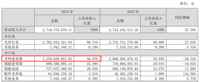 2021年至2024年,首航新能來自并網逆變器板塊的收入分別為11.77億元、18.15億元、20.60億元和12.71億元,占主營業務的比例穩定在50%左右,持續為其發展提供增長動能。