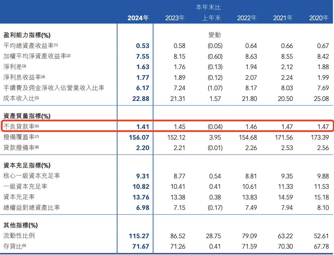 與此同時,威海銀行的質量質量亦保持穩定。截至2024年12月31日,該行的不良貸款比例為1.41%,較2023年末下降0.04個百分點,撥備覆蓋率為156.07%,核心一級資本充足率、一級資本充足率、資本充足率分別為9.31%、10.82%和13.76%。